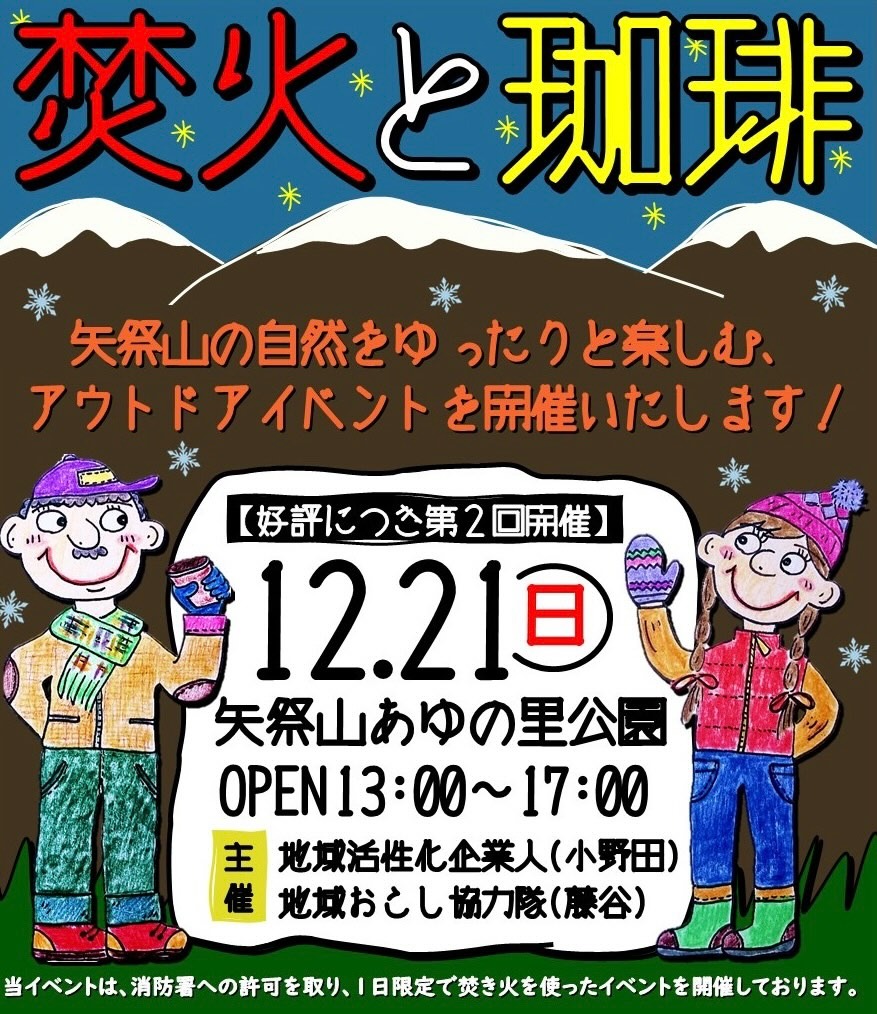 焚き火を囲んで、矢祭山の自然をゆったりと楽しむ、アウトドアイベントです
