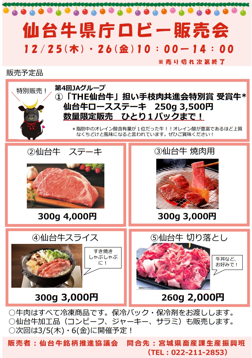 2025年12月25日(木)~12月26日(金)仙台牛販売会