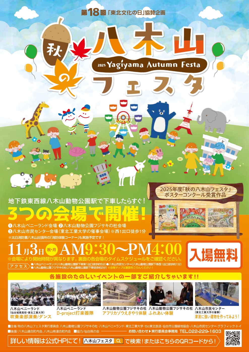 「東北文化の日」にちなみ、八木山動物公園フジサキの杜などの3会場でさ…