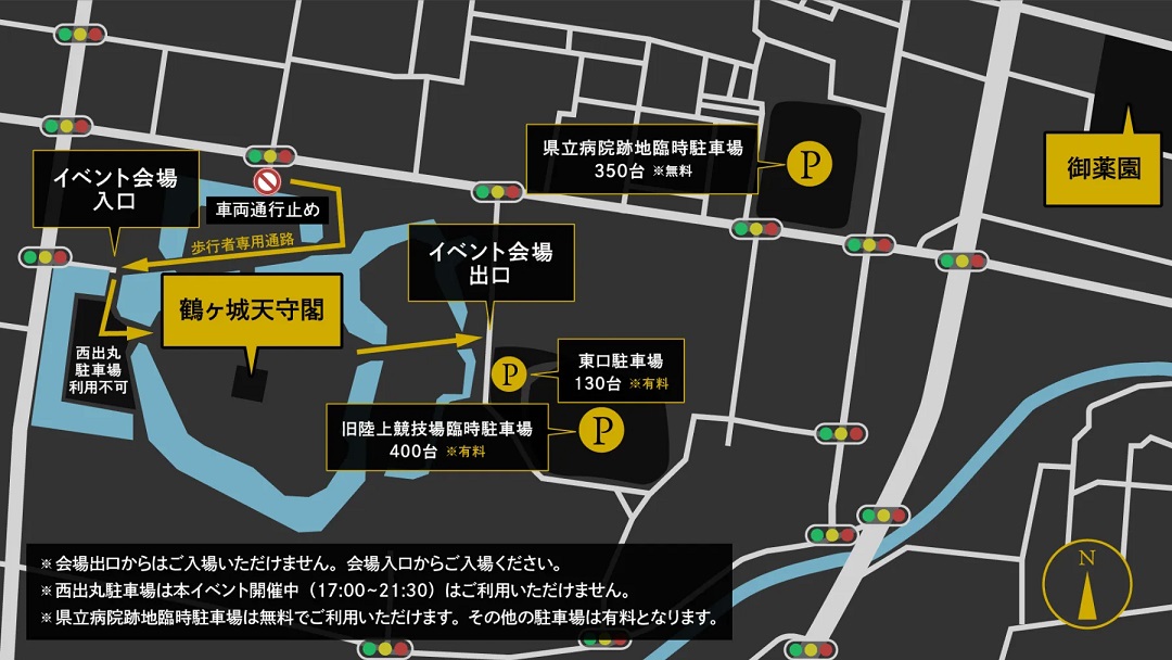 ・西出丸駐車場は本イベント開催中(17:00~21:30)はご利用いただけません。