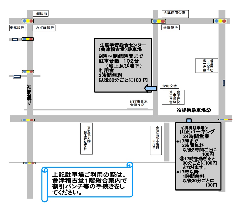 ・提携駐車場:山正パーキング(会津若松市役所 本庁舎から東へ80m)