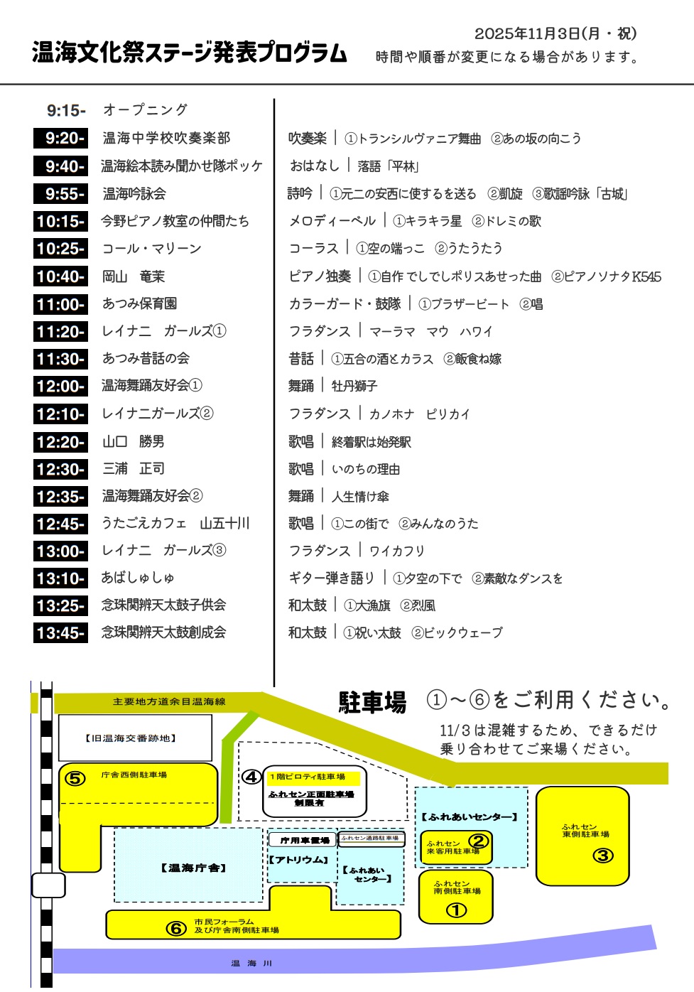 - 0235-43-4611(温海文化祭実行委員会)