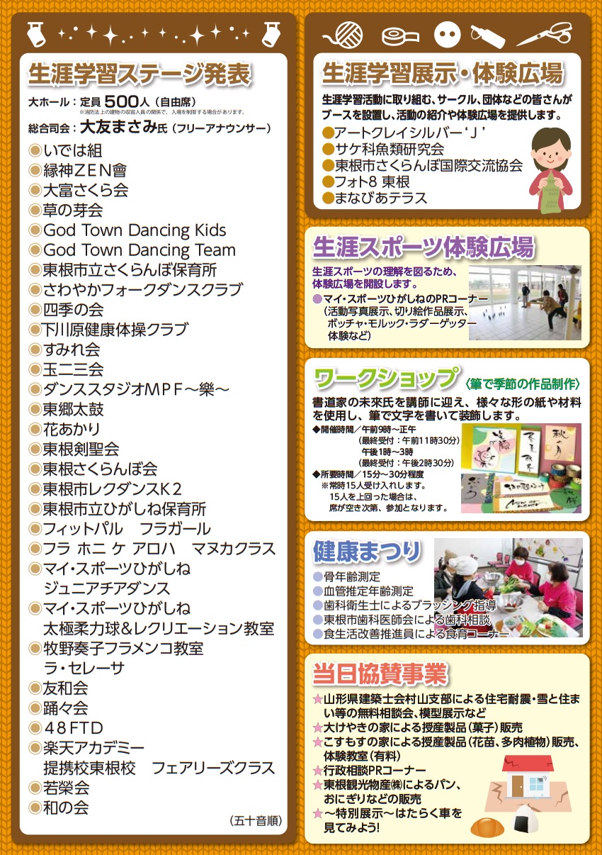 - 0237-42-1111(生涯学習フェスティバル実行委員会)