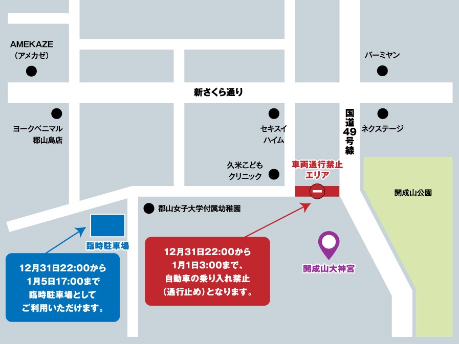 ①境内駐車場(大変混み合いご利用が難しくなります)