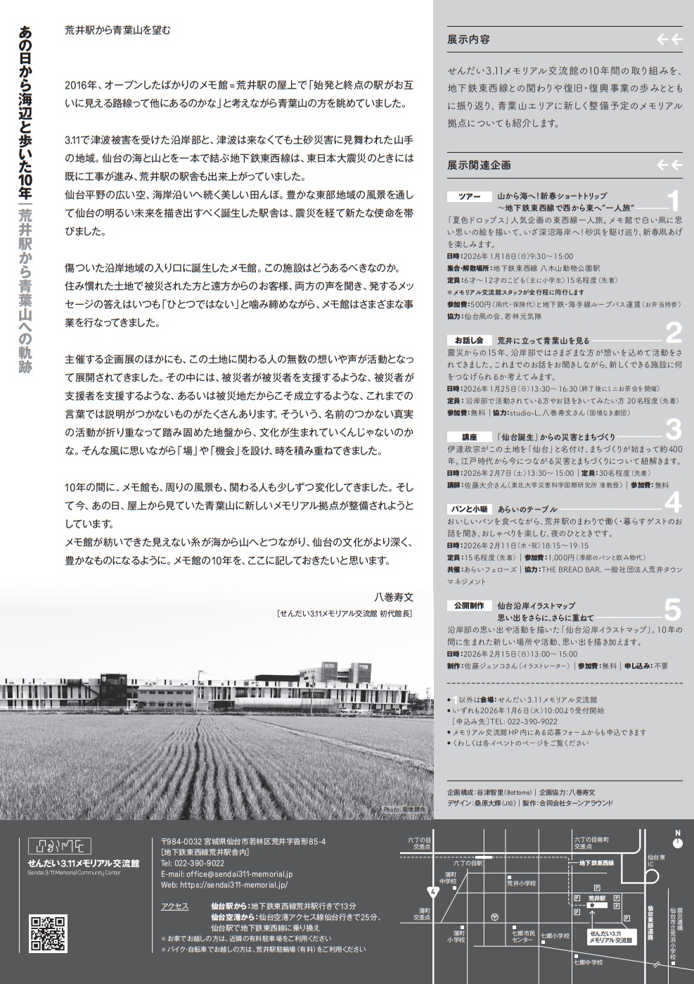 メモリアル交流館が歩いた10年を振り返りながら、今あらためて、荒井駅から青葉山を望みます