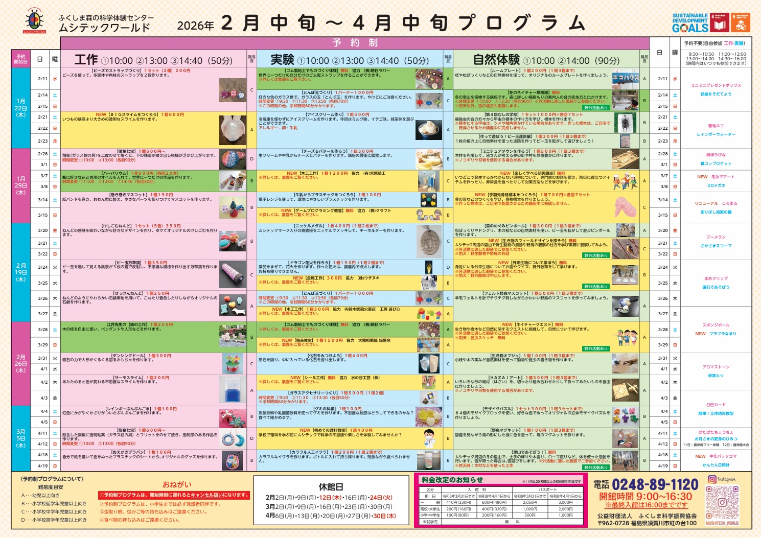 - 0248-89-1120(ふくしま森の科学体験センター)