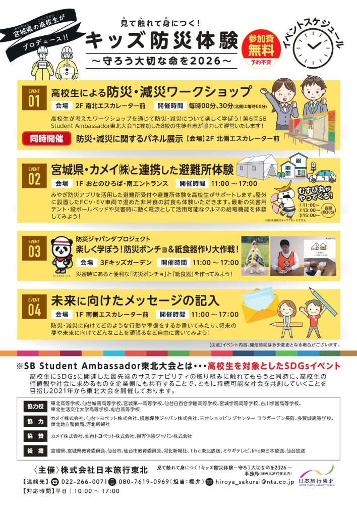 高校生による防災・減災ワークショップなどイベントでの体験を通じて防災・減災について学べるイベントです。
