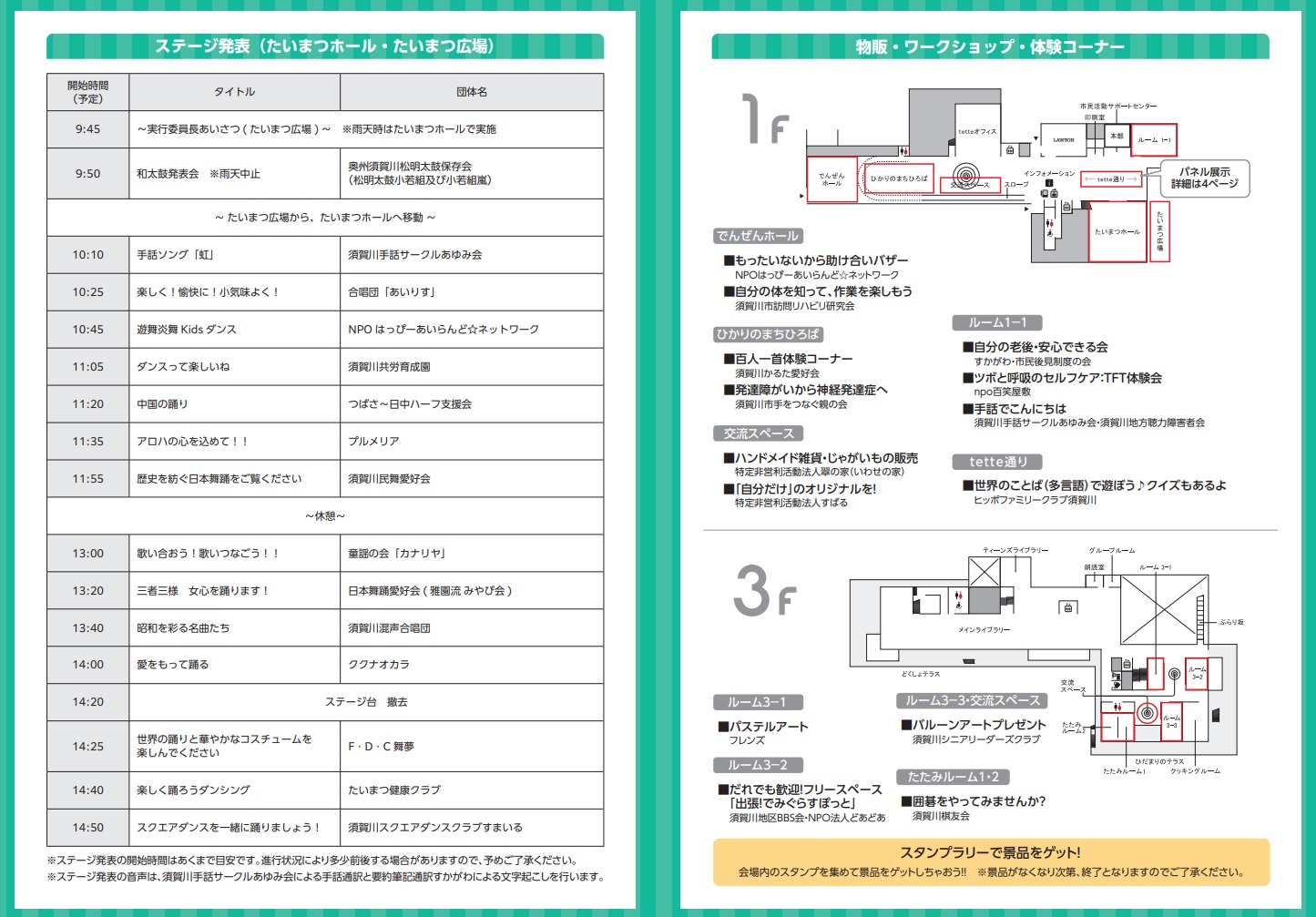 パネル展示やワークショップ・体験コーナー、物販、ステージ発表など開催する。