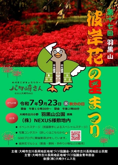 古川地域羽黒山公園の丘一面に咲き誇る彼岸花の群生地は見事な景色です