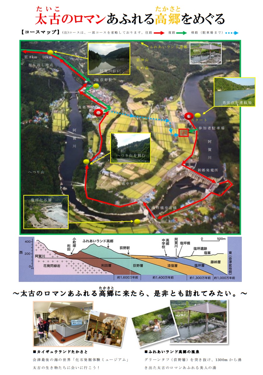 太古のロマンあふれる高郷をめぐる10kmと8kmのコース。