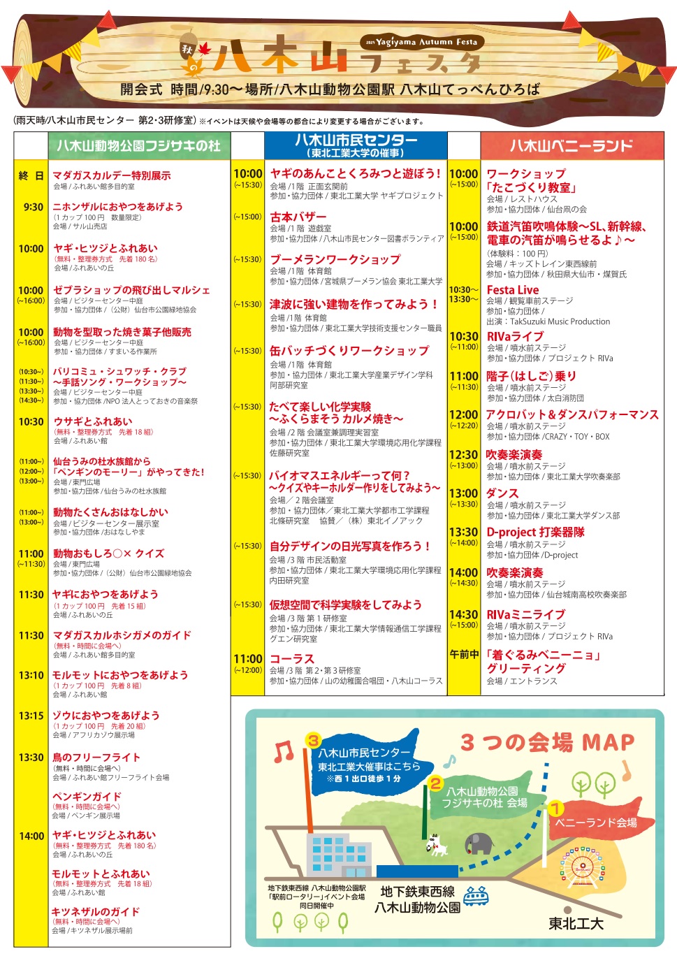 「東北文化の日」にちなみ、八木山動物公園フジサキの杜などの3会場でさまざまな楽しいイベントを行います