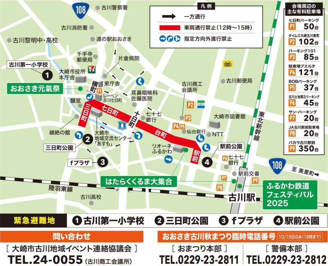 - 大崎市役所本庁舎駐車場、七日町~台町~古川駅前ほか