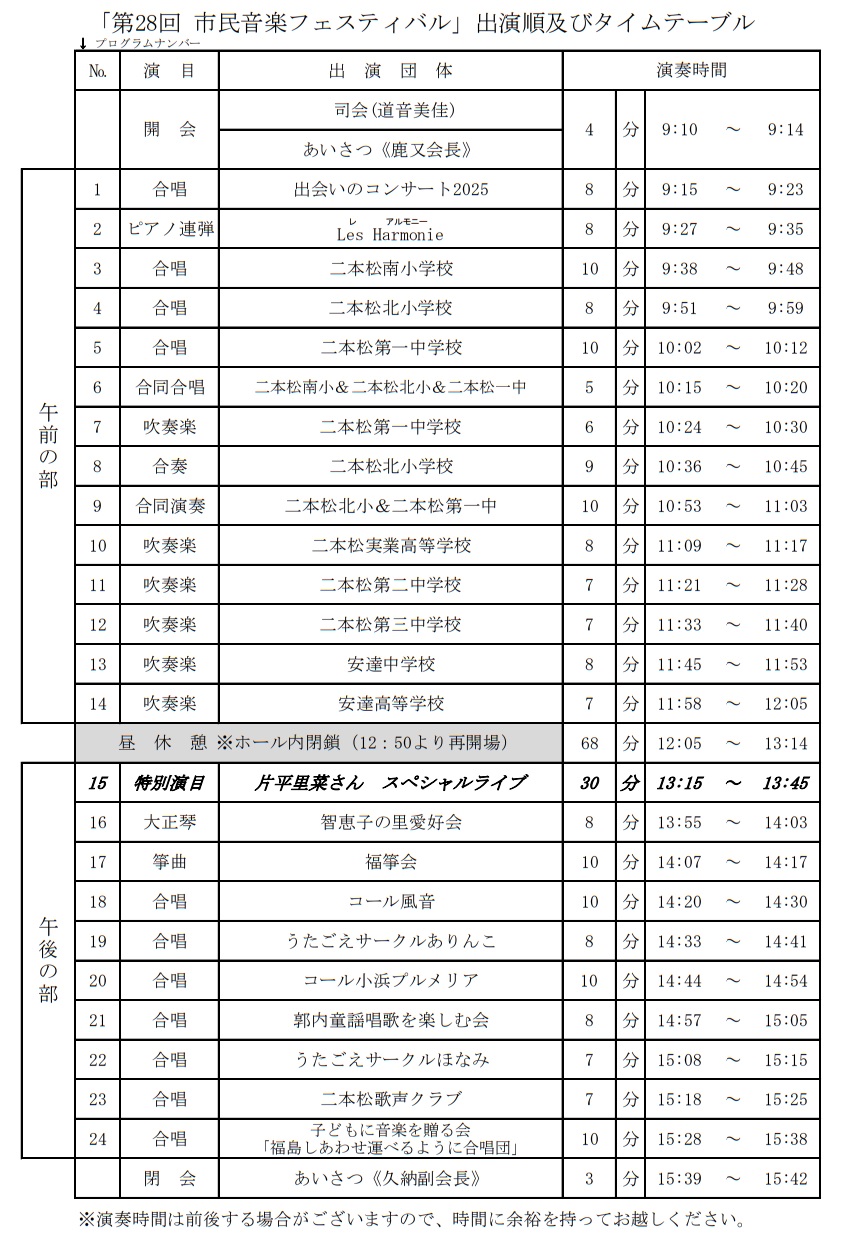 市内小中高校生と一般の音楽愛好団体が集い、ふれあい音楽祭を開催します