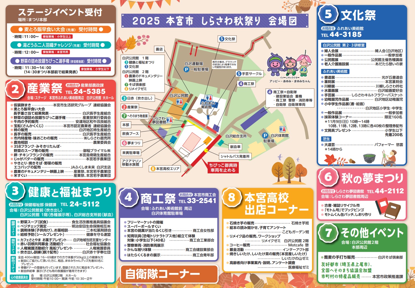 本祭りは、「産業祭」「商工祭」「健康と福祉まつり」「文化祭」の4つの祭りが開催されます