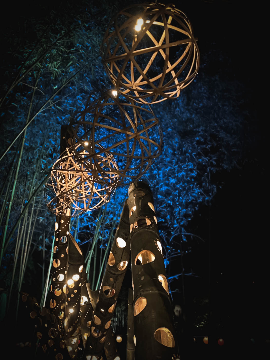 地域の課題である〈放置竹林〉を、光のアートとして再生する“循環型の灯り”が特徴。