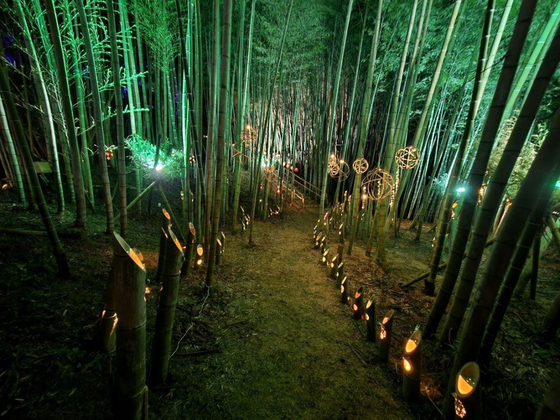 歴史ある竹林の小径を歩きながら、光の回廊を散策できます。