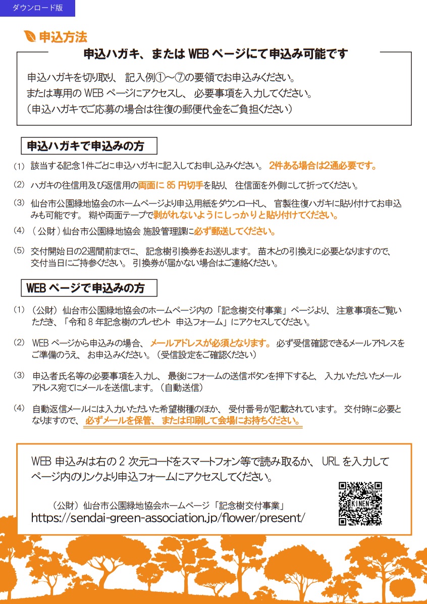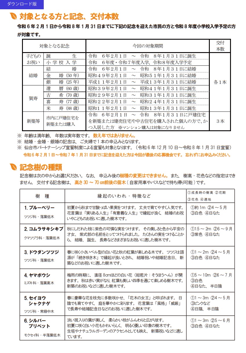 仙台市では、人生の節目となる慶びを記念して対象となる方へ「記念樹」をプレゼントしています