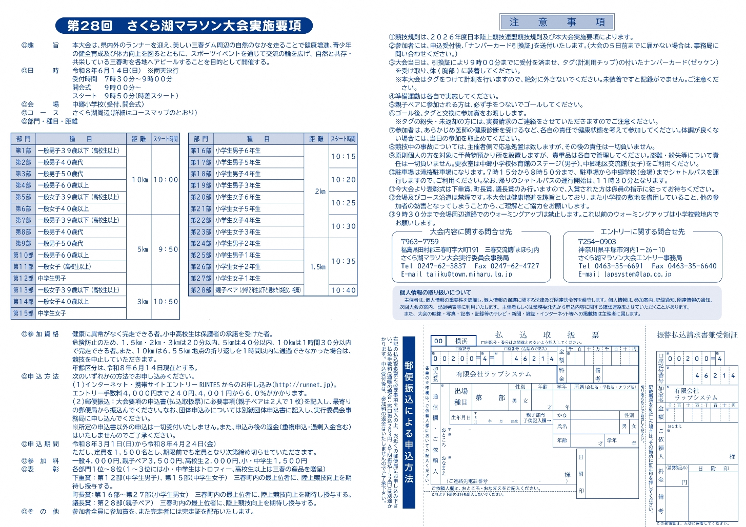 - 0247-62-3837(さくら湖マラソン大会実行委員会)