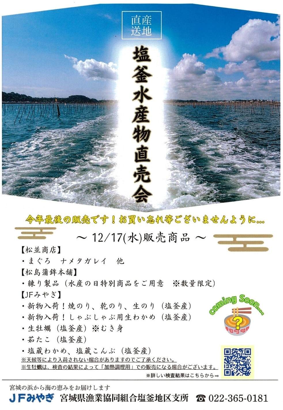 - 022-365-0181(宮城県漁業協同組合塩釜地区支所)