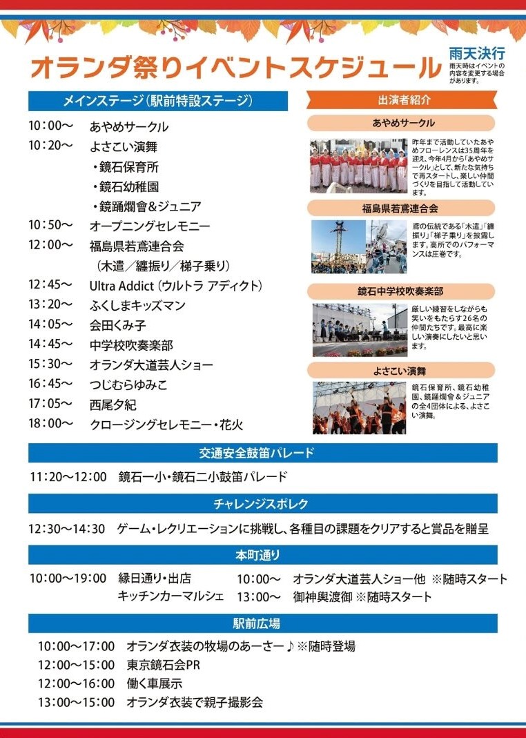 ライブイベントやよさこいなどのステージアトラクションやキッチンカー&縁日通りなど盛沢山の内容です。