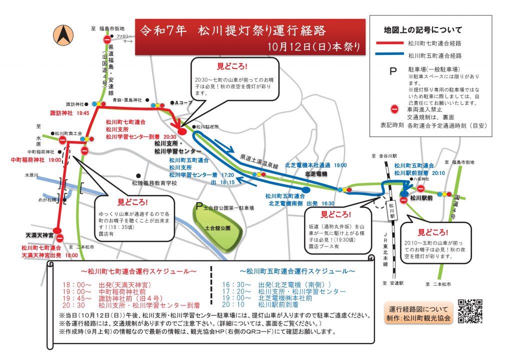 天神宮(出発) 18:00~ 本町交差点19:25~松川支所(解散) 20:45