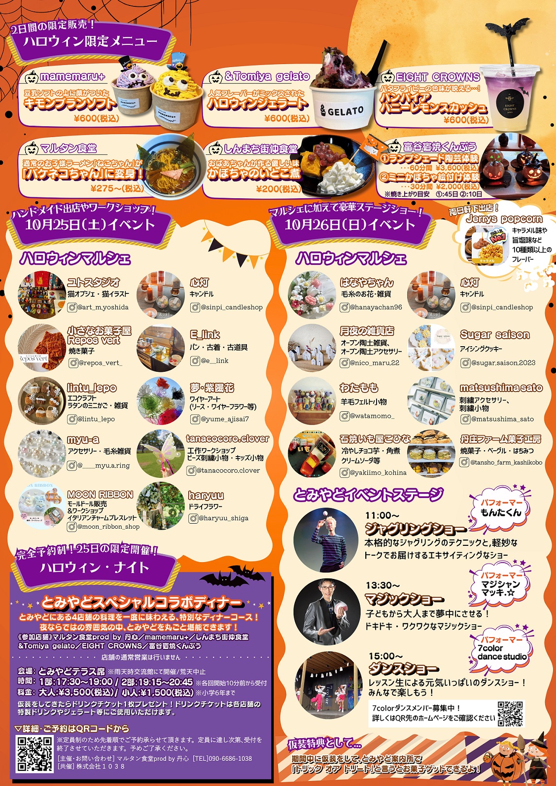 ハロウィンマルシェやイベントステージ、ハロウィン限定メニューなど販売されます