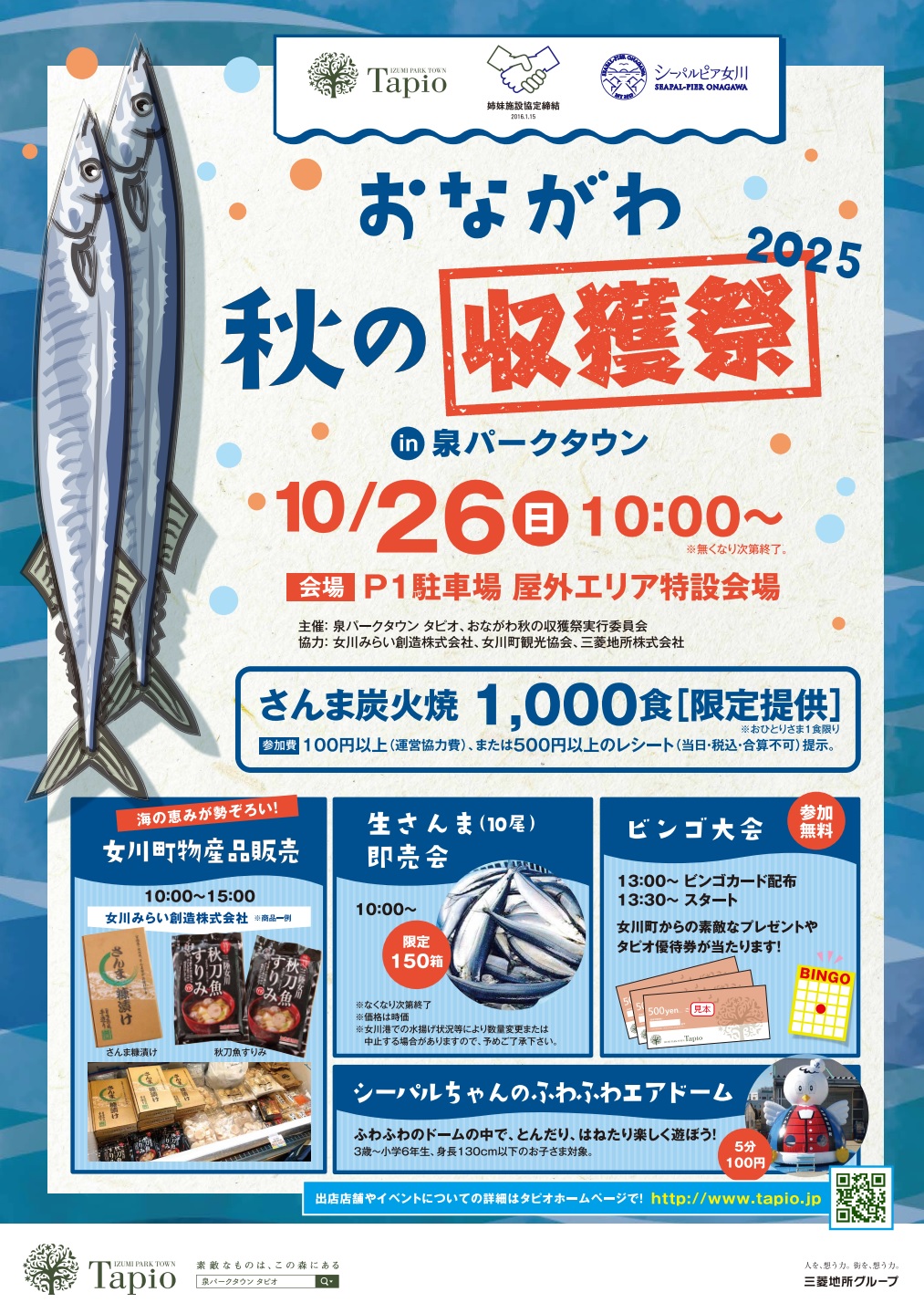 女川町の秋刀魚の祭典、炭火焼限定1,000食のほか女川町物産品販売や生サンマ即売会など開催されます