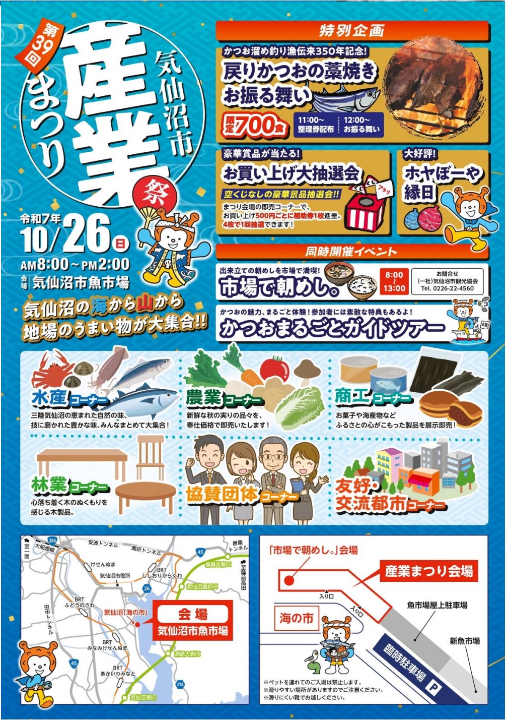 気仙沼市魚市場で開催される産業イベント。商工・水産・農業・林業の各コーナーに気仙沼の自慢の商品が特別価格で販売されます