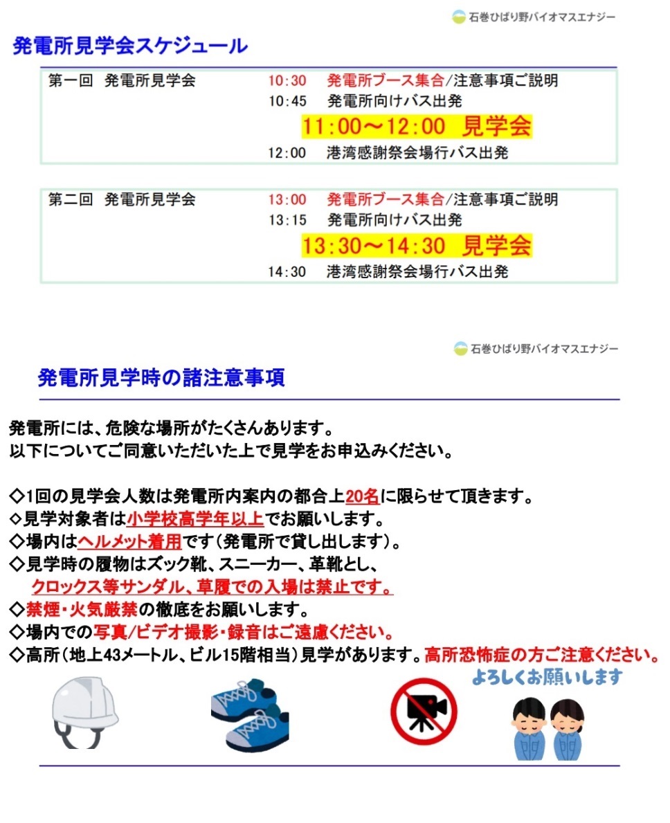 見学希望の方には、当日10時から発電所ブースにて整理券を配布いたします。