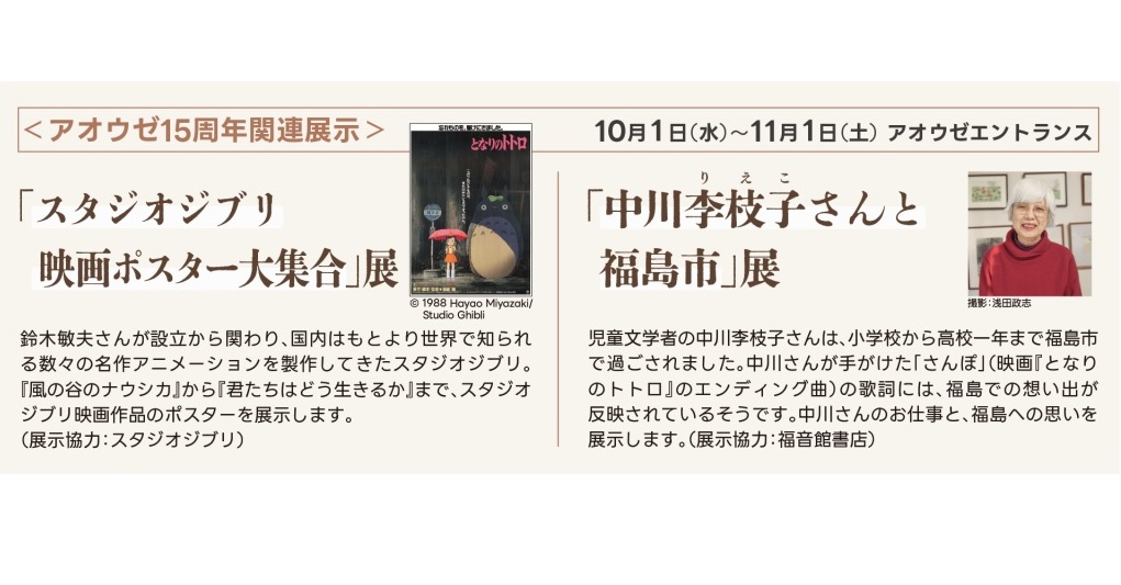 アオウゼ15周年関連展示「スタジオジブリ映画ポスター大集合」展・「中川李枝子さんと福島市」展