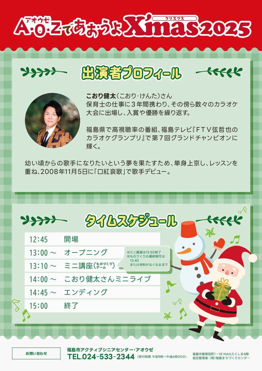 A・O・ZであおうぜX'mas2025 ~ワクワク体験と歌のステージを楽しもう!~