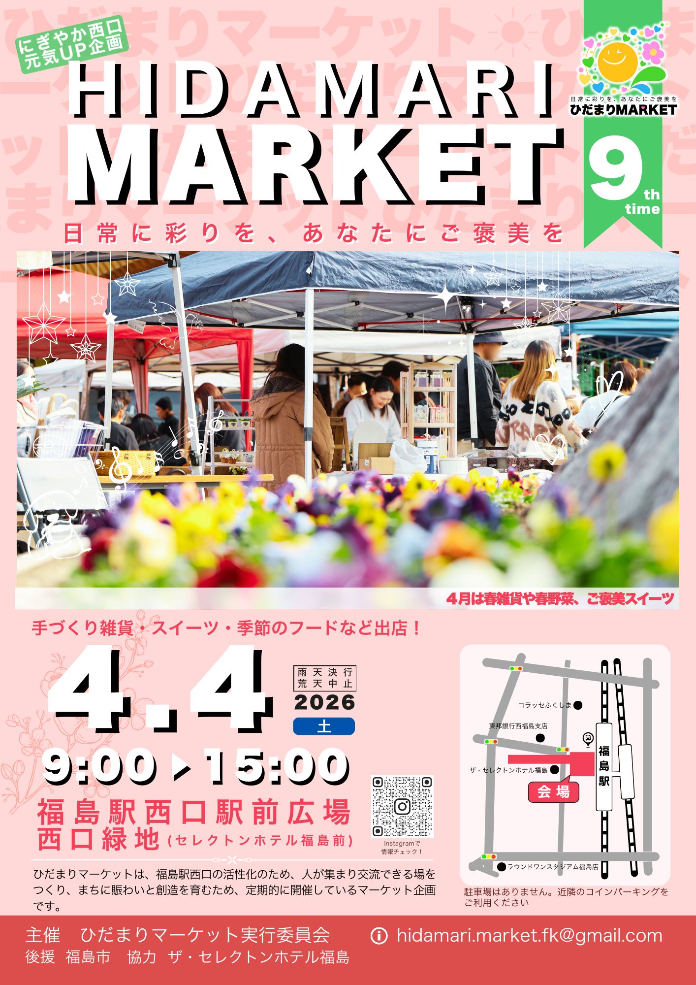 福島駅西口 春のマルシェ「第9回ひだまりマーケット」4/4開催