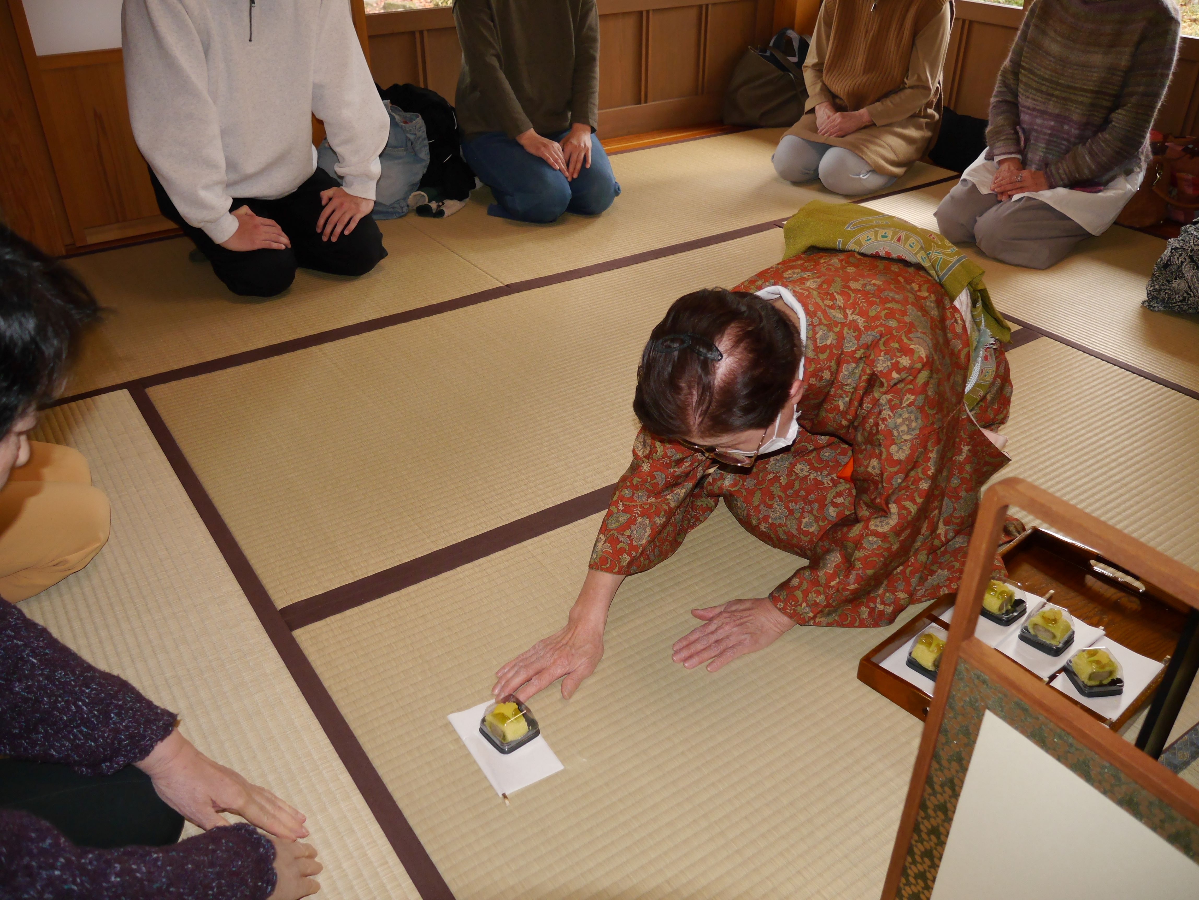(今回は、お抹茶を自分で点てる体験ではなく、先生の点てた抹茶をいただく茶会になります。)