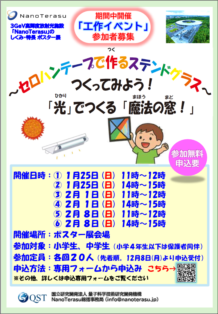 放射光施設NanoTerasuのしくみや特長などを紹介するポスター展と小中学生を対象とした工作イベントを開催します