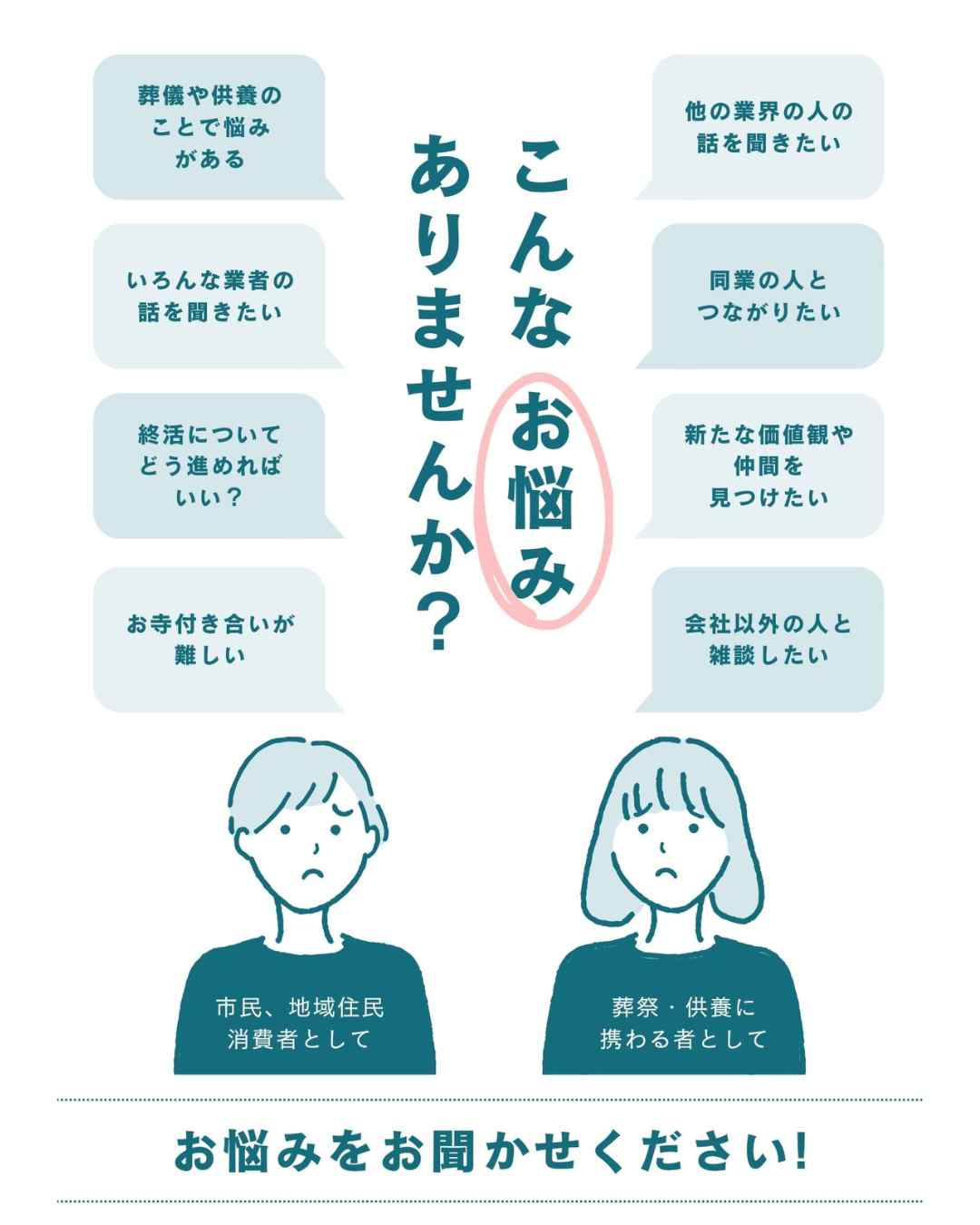 弔いに関するさまざまな悩み事、関心事を、ちょっと相談しに行ける場所。 「会いに行ける業者」「顔の見える業者」がコンセプト。