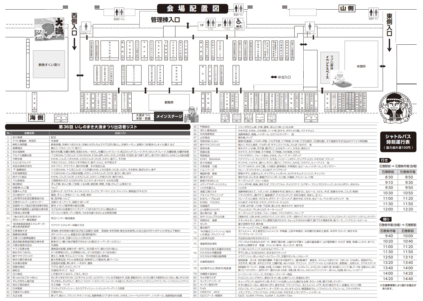 ・石巻駅前から会場までシャトルバス運行(片道100円の協力金)