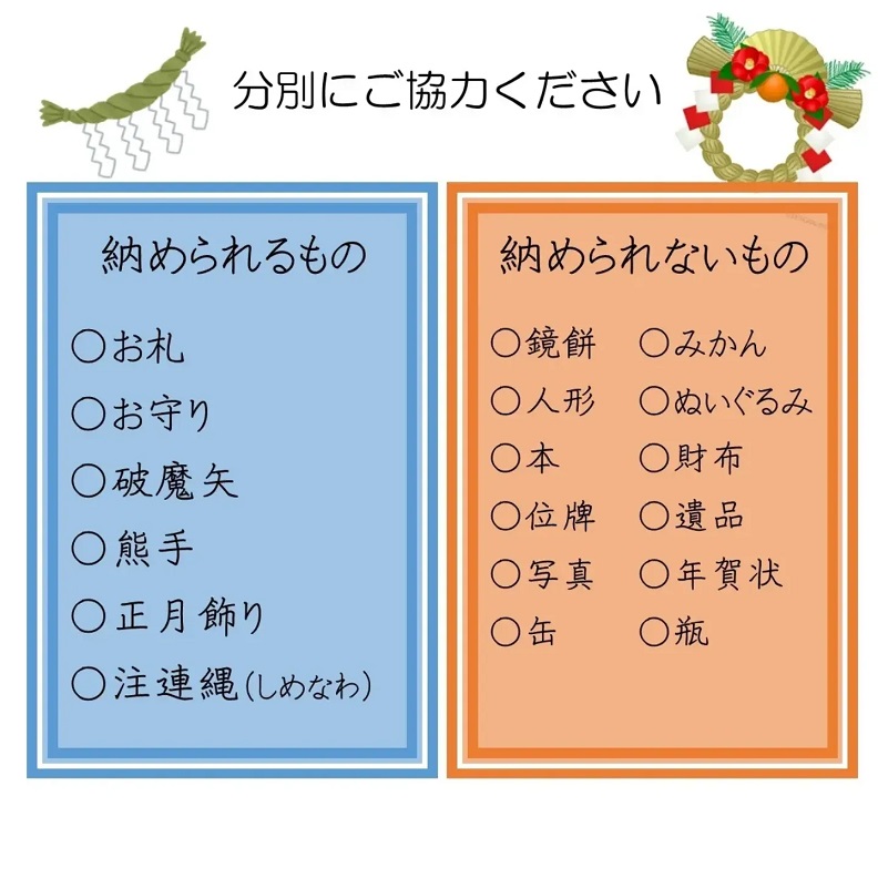 正月飾りや昨年ご守護頂いた御札や御守りをお焚き上げする神事です。