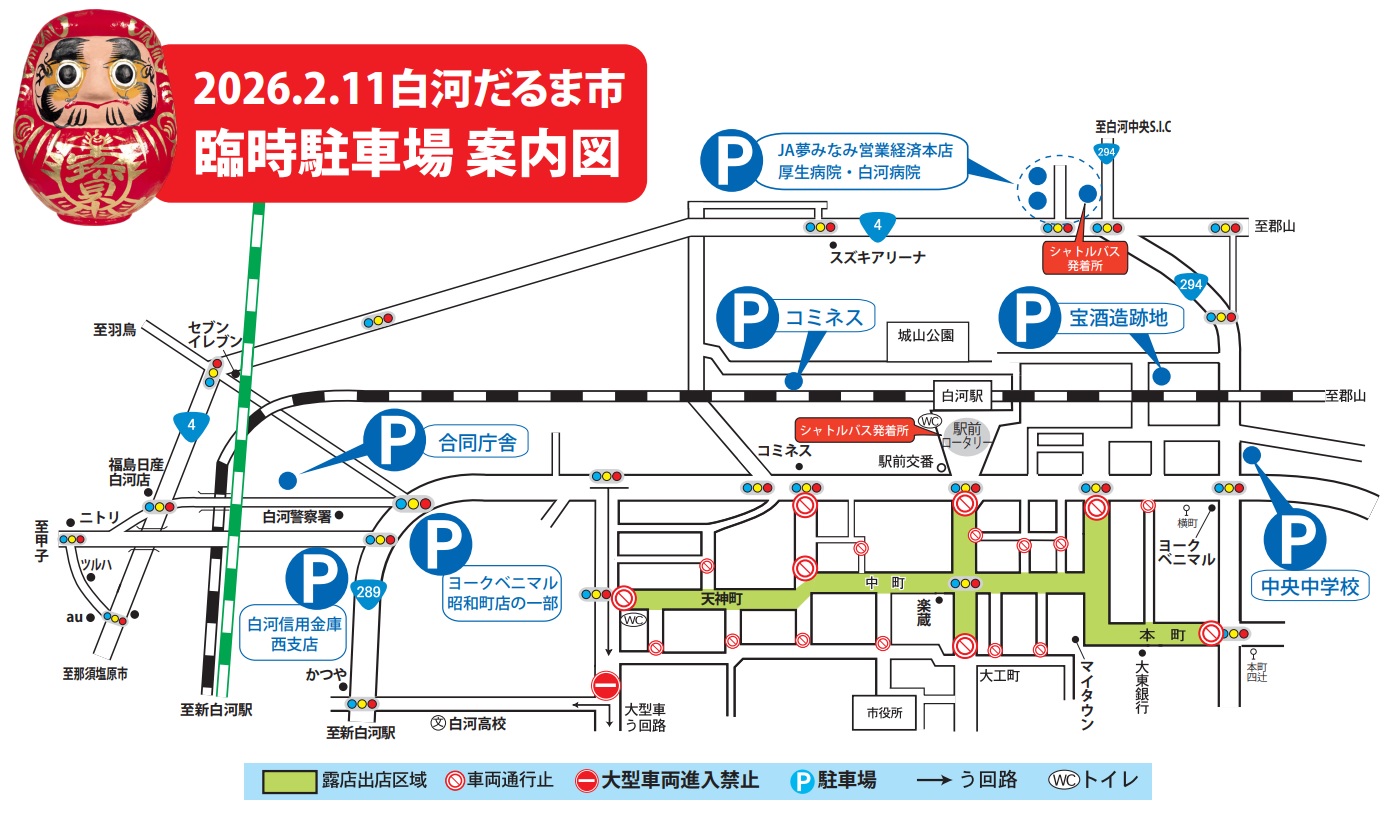 ・JA夢みなみ営農経済本店白河駐車場(シャトルバスが利用できます)