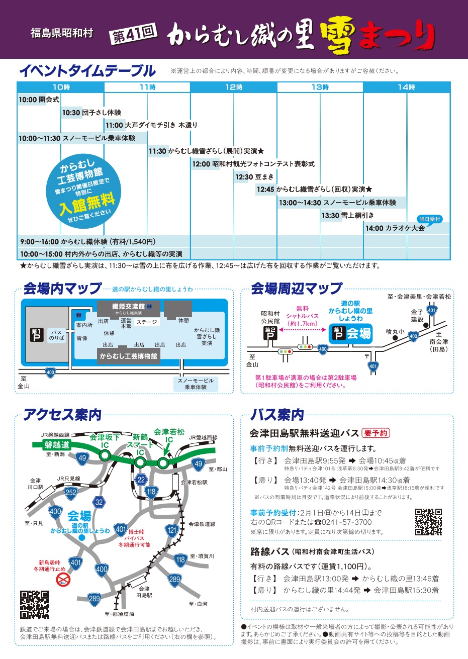 - 0241-57-3700(からむし織の里雪まつり実行委員会)