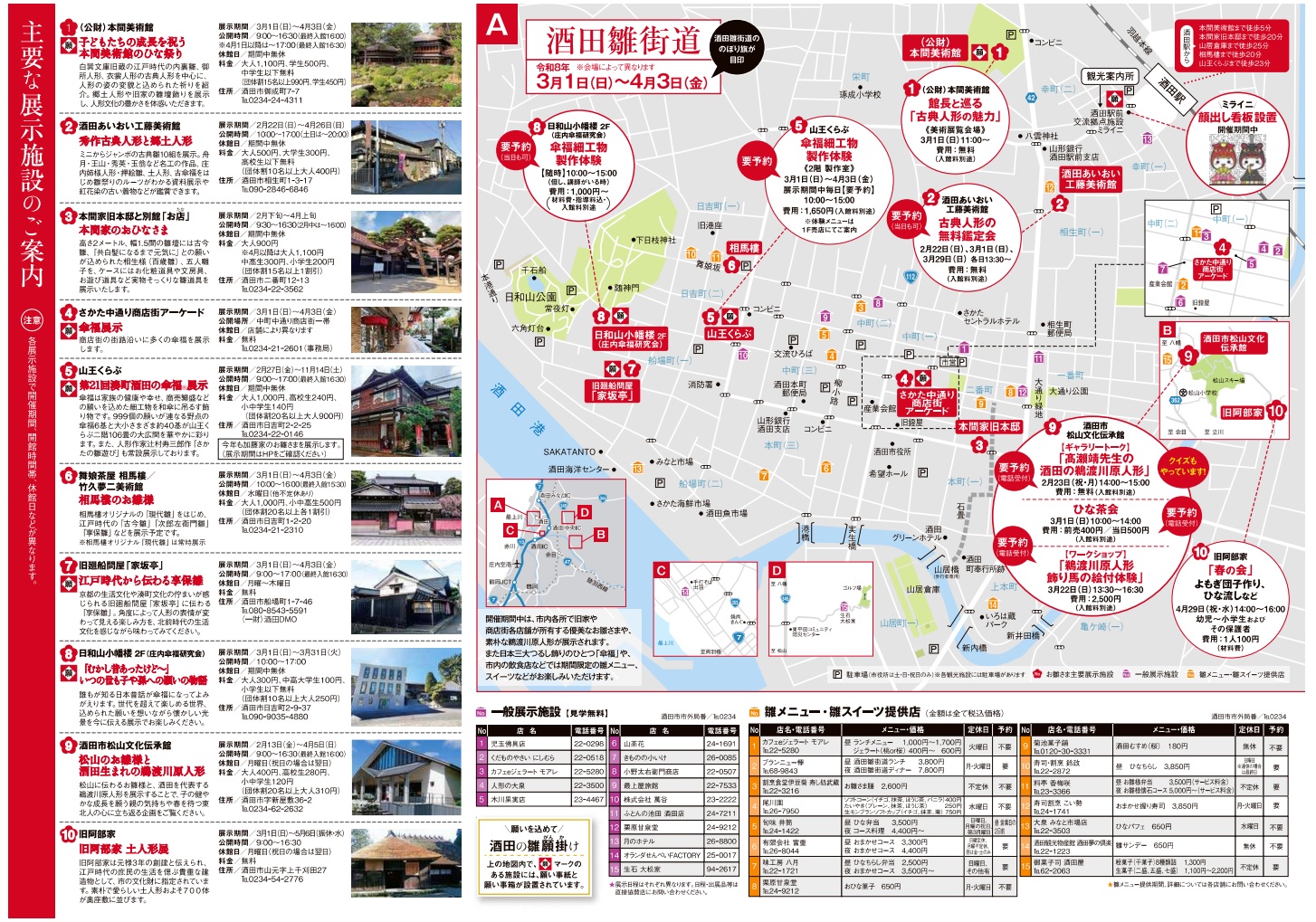 - 酒田市内観光施設など主要10会場