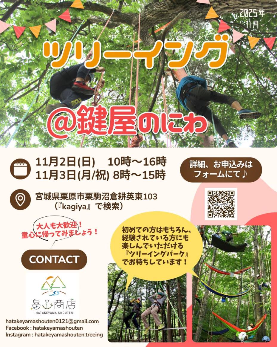ツリーイングin秋深まる栗駒山麓! ツリーイングとは、専用のロープ…