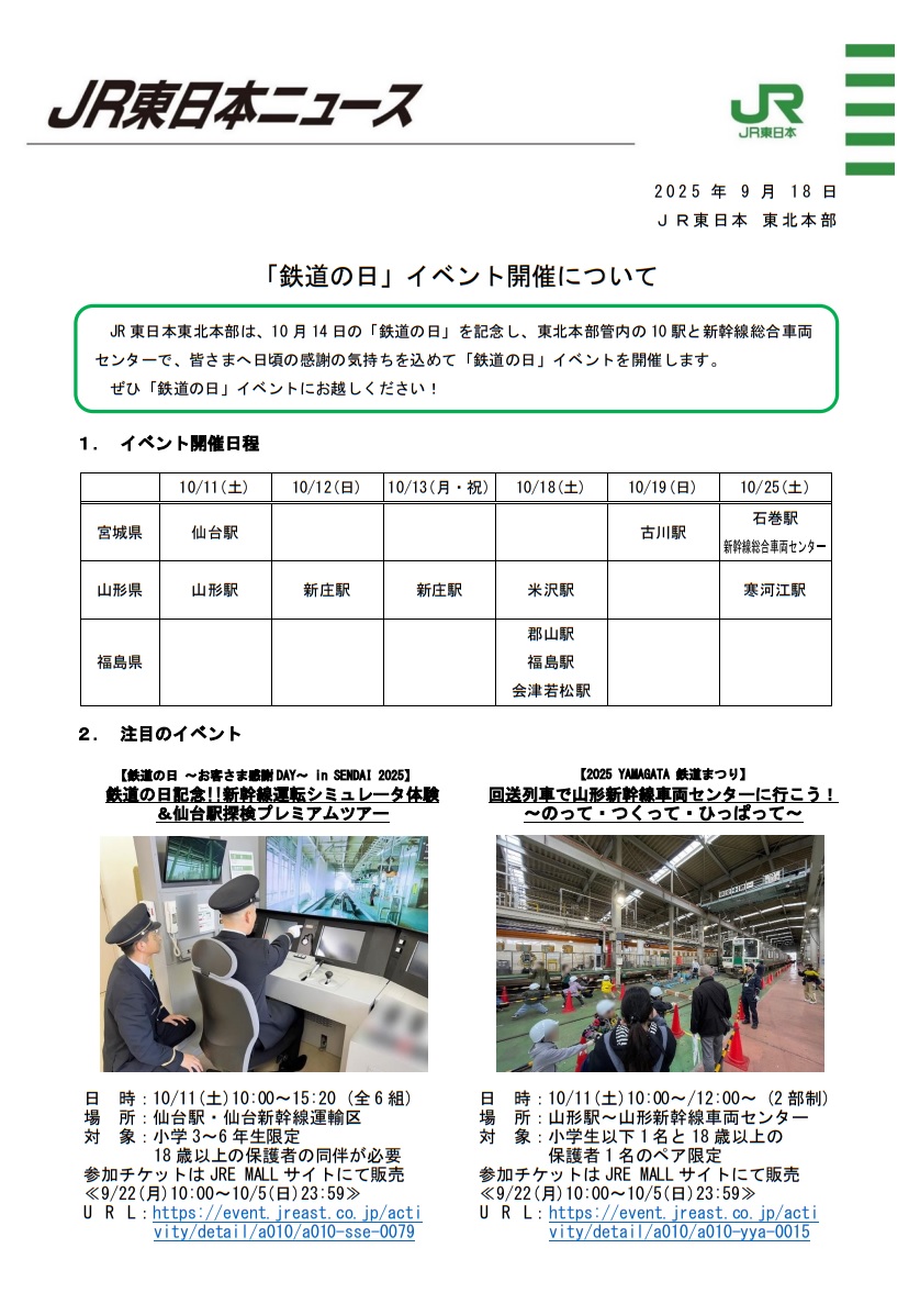 「鉄道の日」を記念し、仙台駅では10月11日に「鉄道の日 ~お客さま…