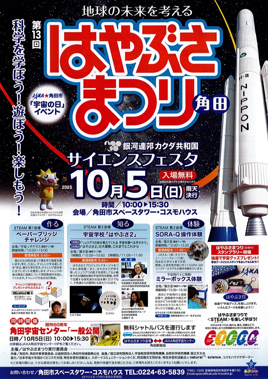 施設の公開やJAXA職員による講演、ワークショップなども開催されます