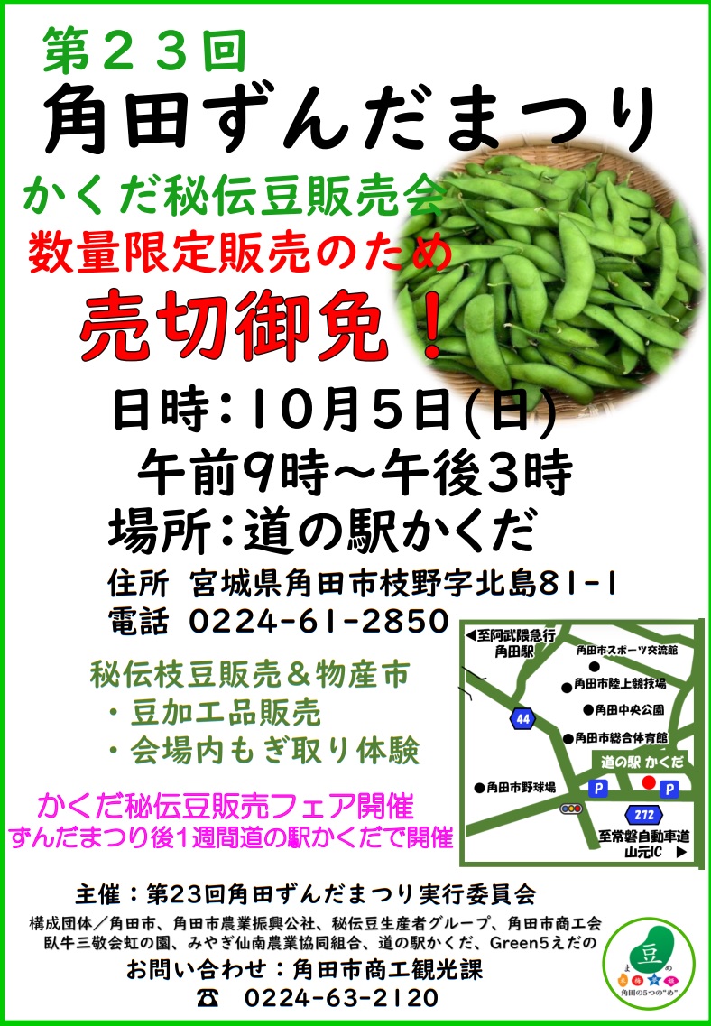 角田産のおいしい秘伝豆や大豆加工品を販売します。 豆が無くなり次第終了