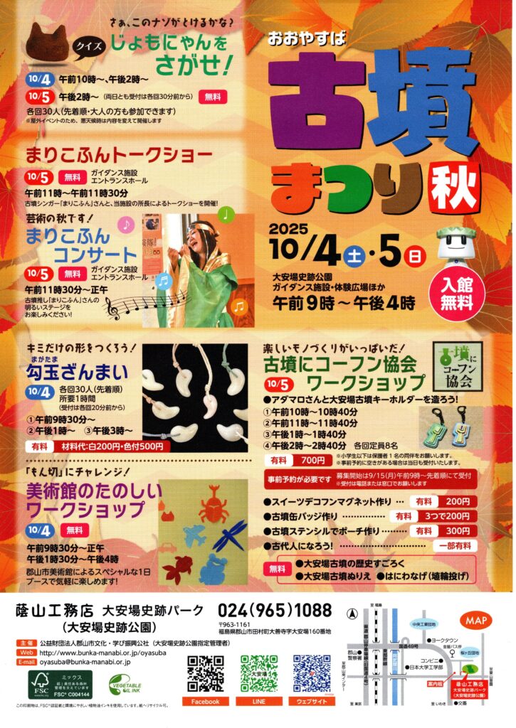クイズ大会や人気メニューの勾玉作り、古墳シンガーまりこふんのライブな…