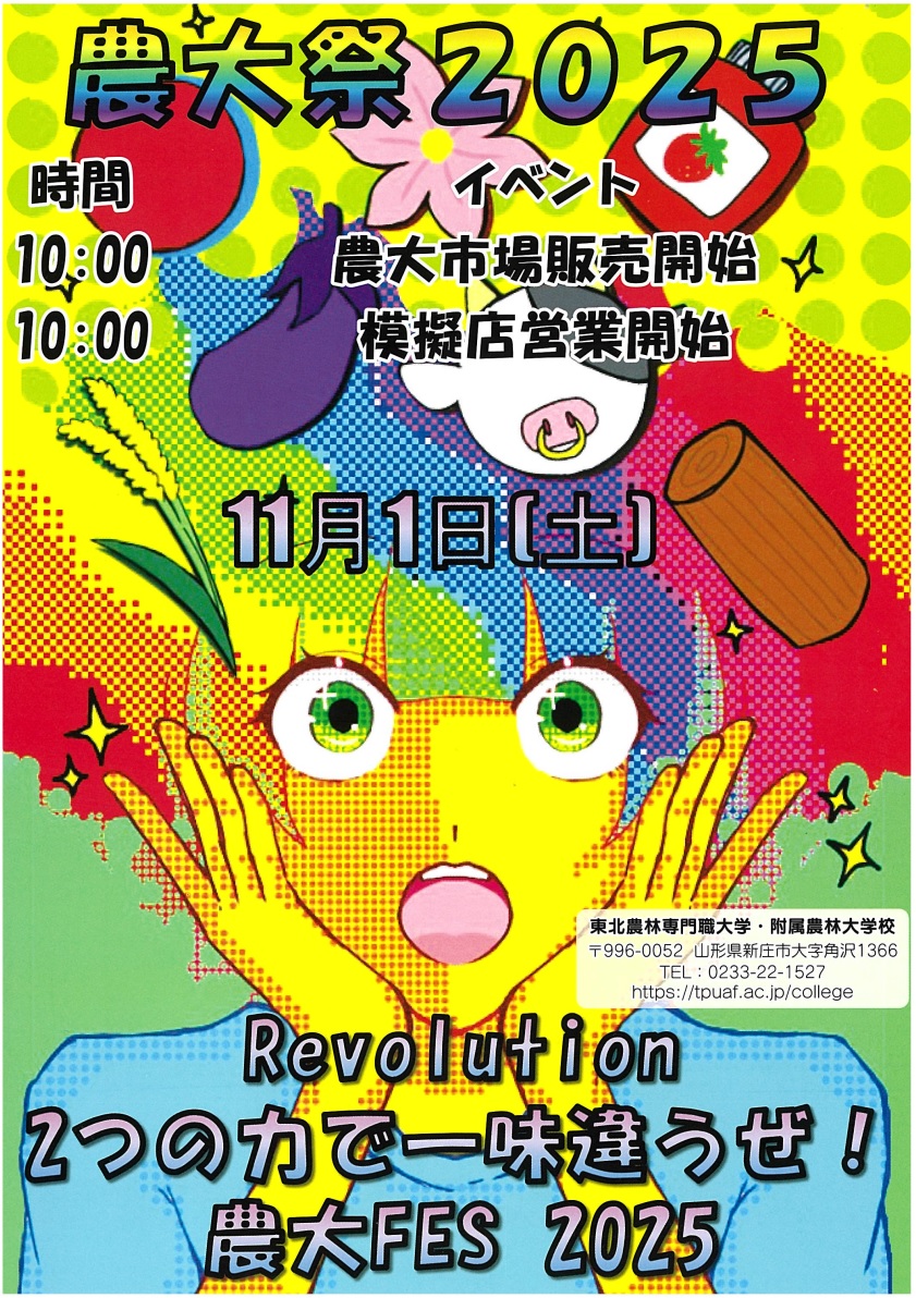 農大市場(農産物等販売)や模擬店、抽選会、サークルライブなど開催され…