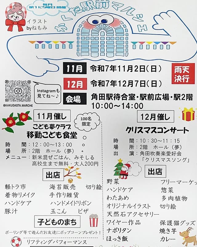 新鮮野菜や雑貨等の販売のほかキッチンカーの出店やこどものまちなど。4…