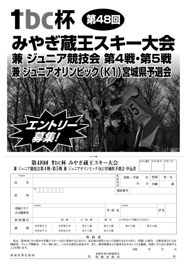 2026年2月28日(土)~3月1日(日)第48回tbc杯みやぎ蔵王スキー大会 兼ジュニア競技会 第4戦・第5戦 兼ジュニアオリンピック宮城県予選会