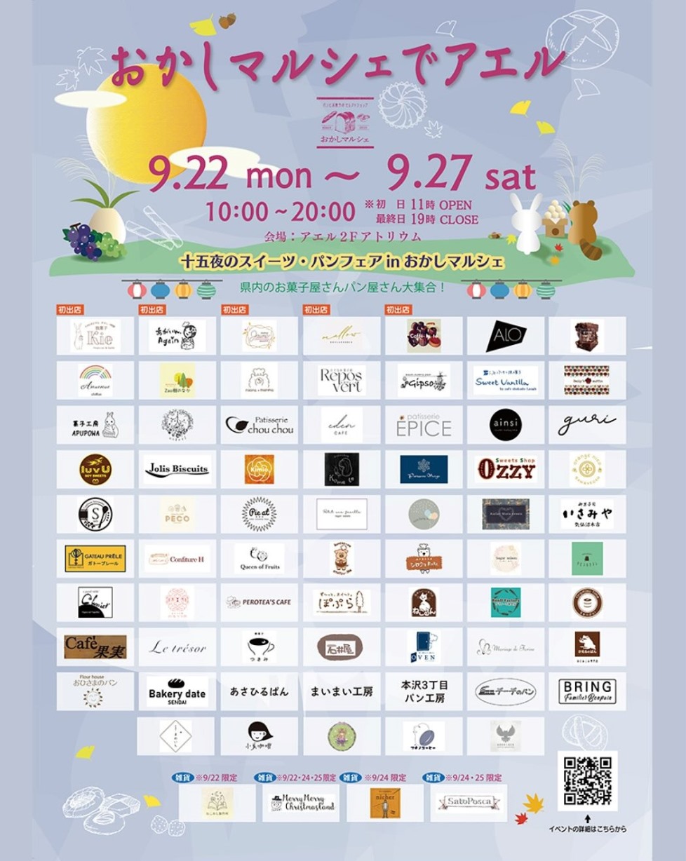 宮城県内の人気のお菓子屋さんや、パン屋さんがアエルに大集合します