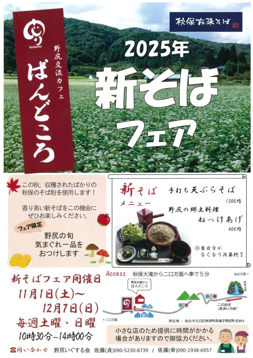2025年11月1日(土)~12月7日(日)野尻交流カフェばんどころ 新そばフェア